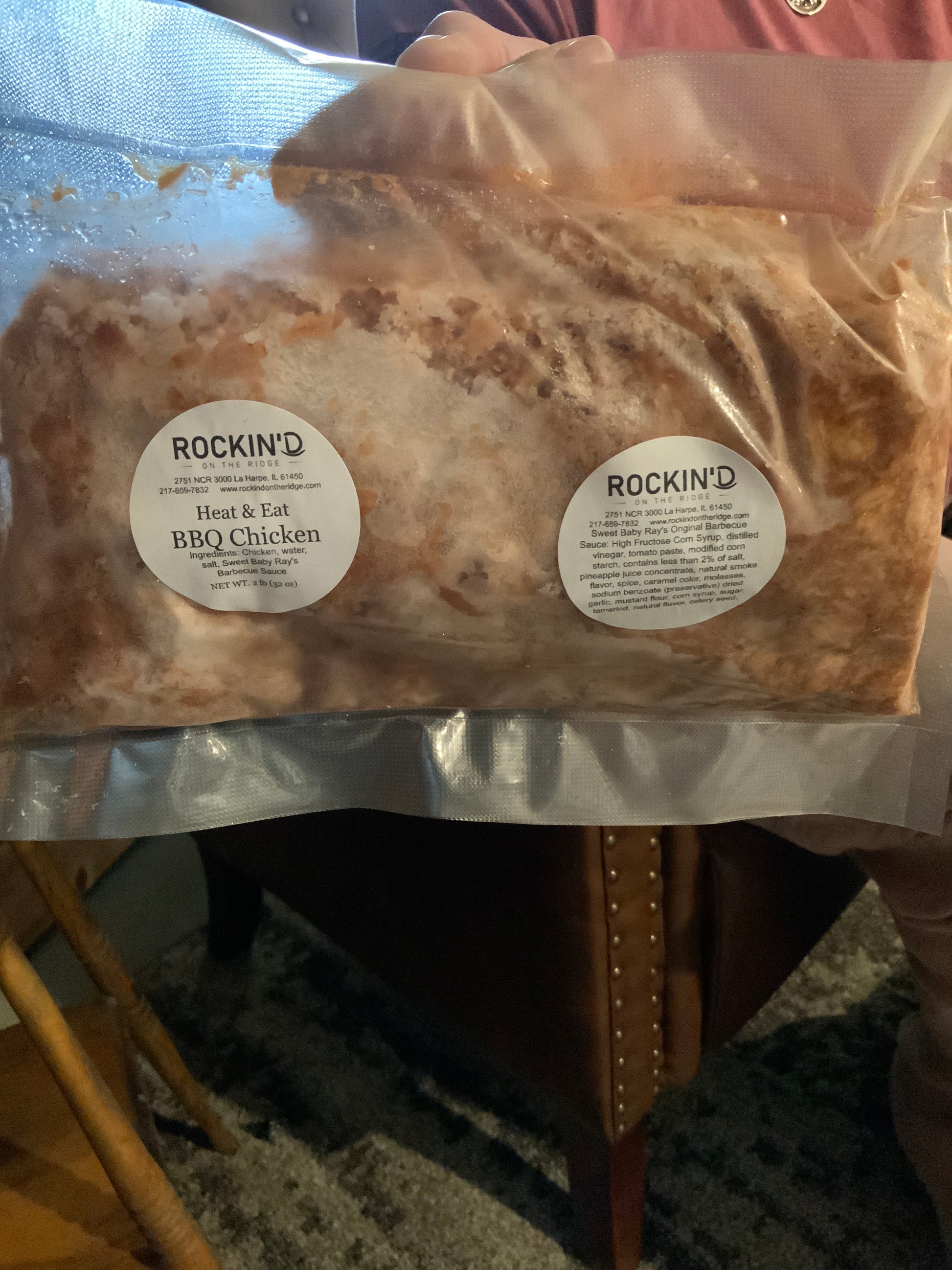 Heat & Eat BBQ chicken! Comes frozen, thaw in the refrigerator overnight. Toss in a crockpot or heat in a pan.