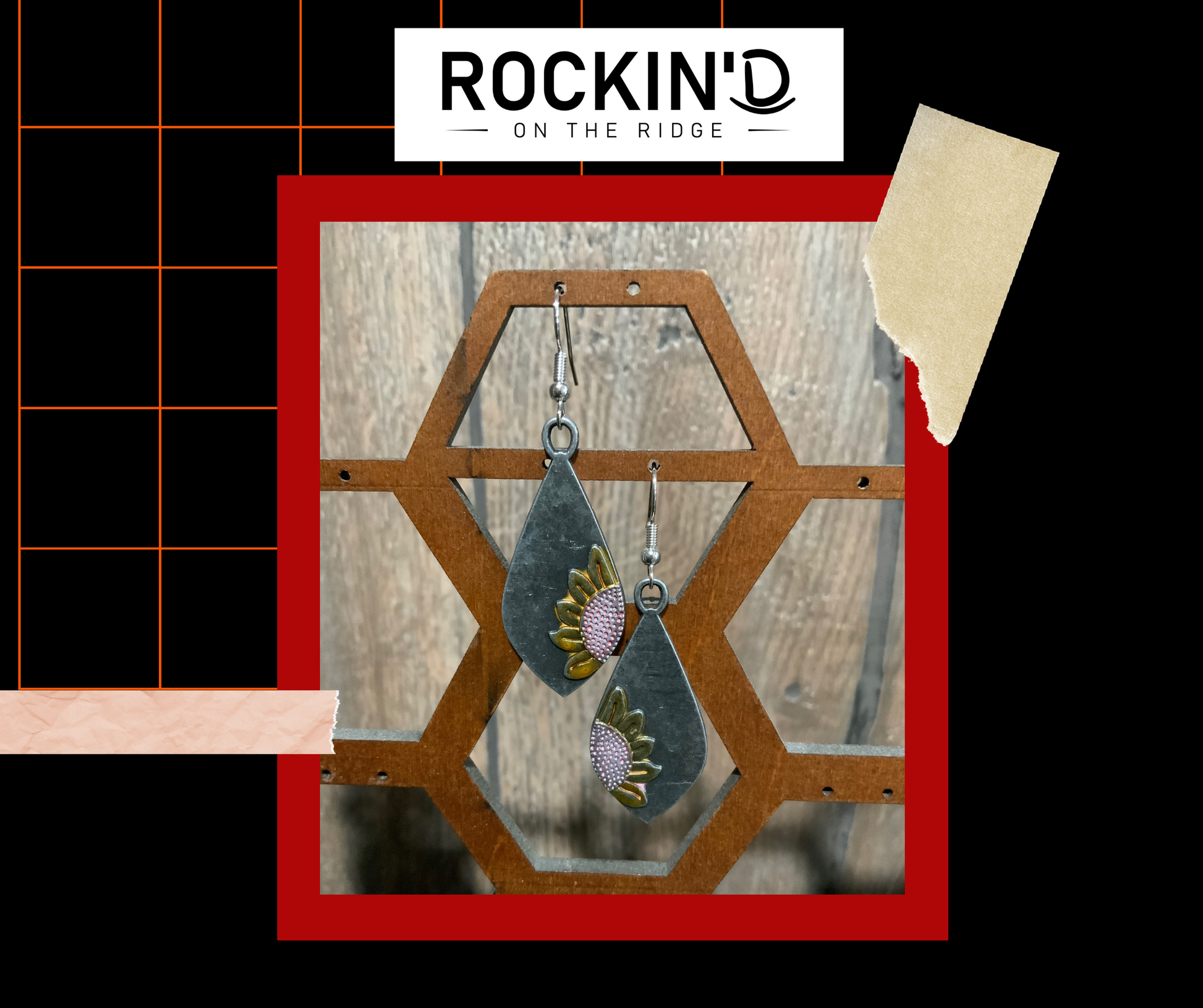 Teardrop shape with half a sunflower on each earring